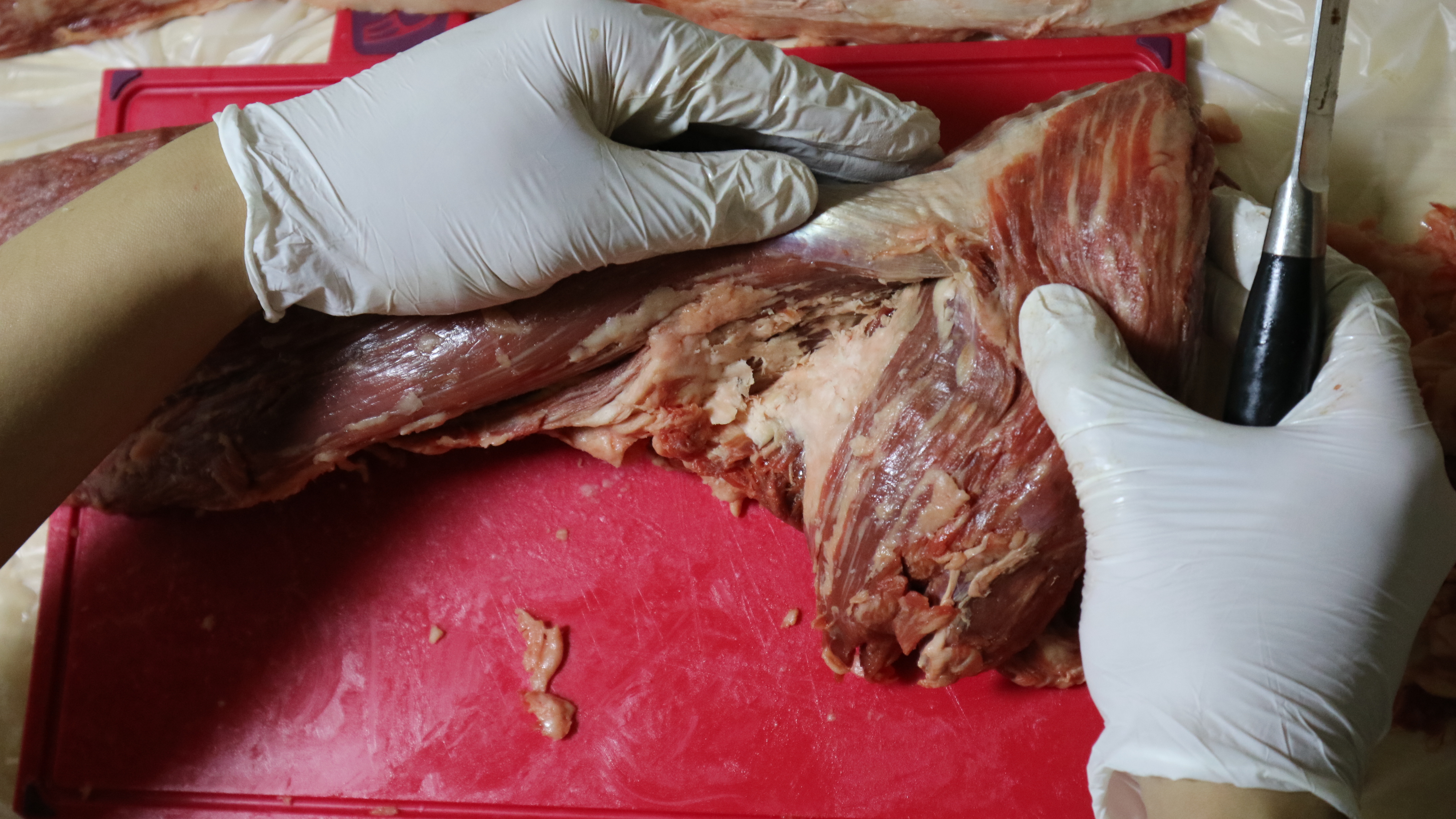 양갈래 진 사이에 지방도 많고 스지가 굵은게 붙어있어요. 그걸 다 제거해줘야해요.