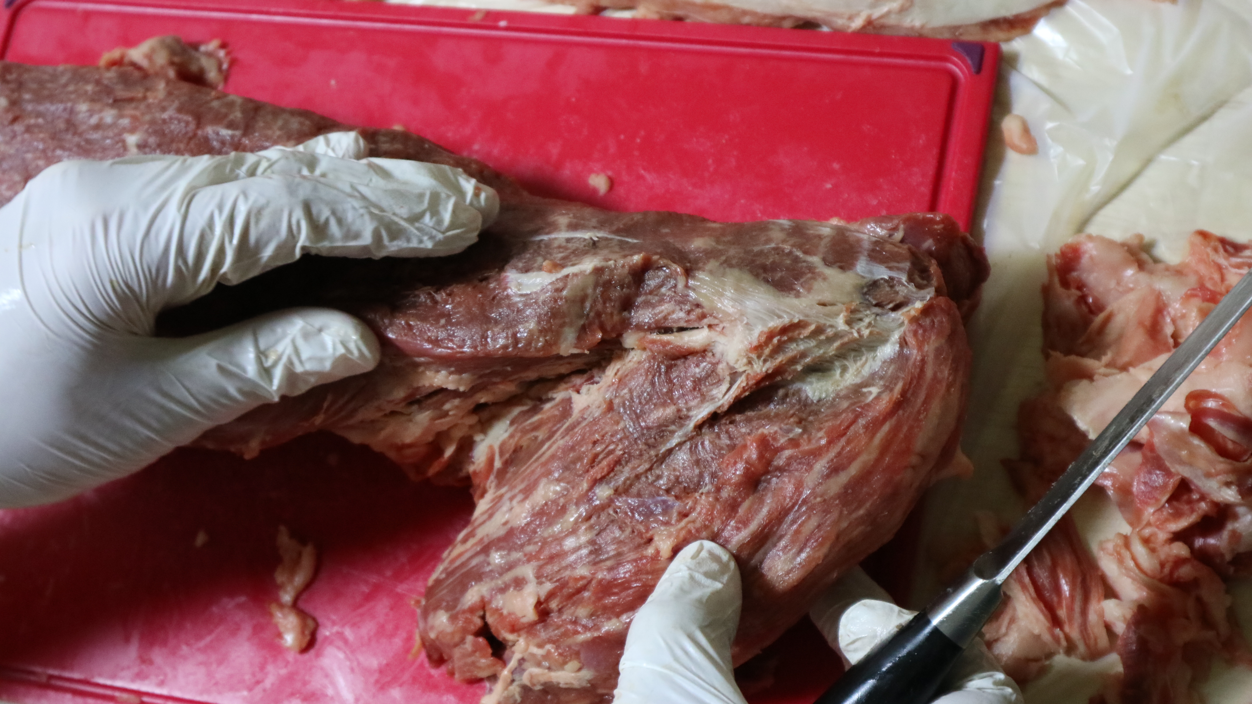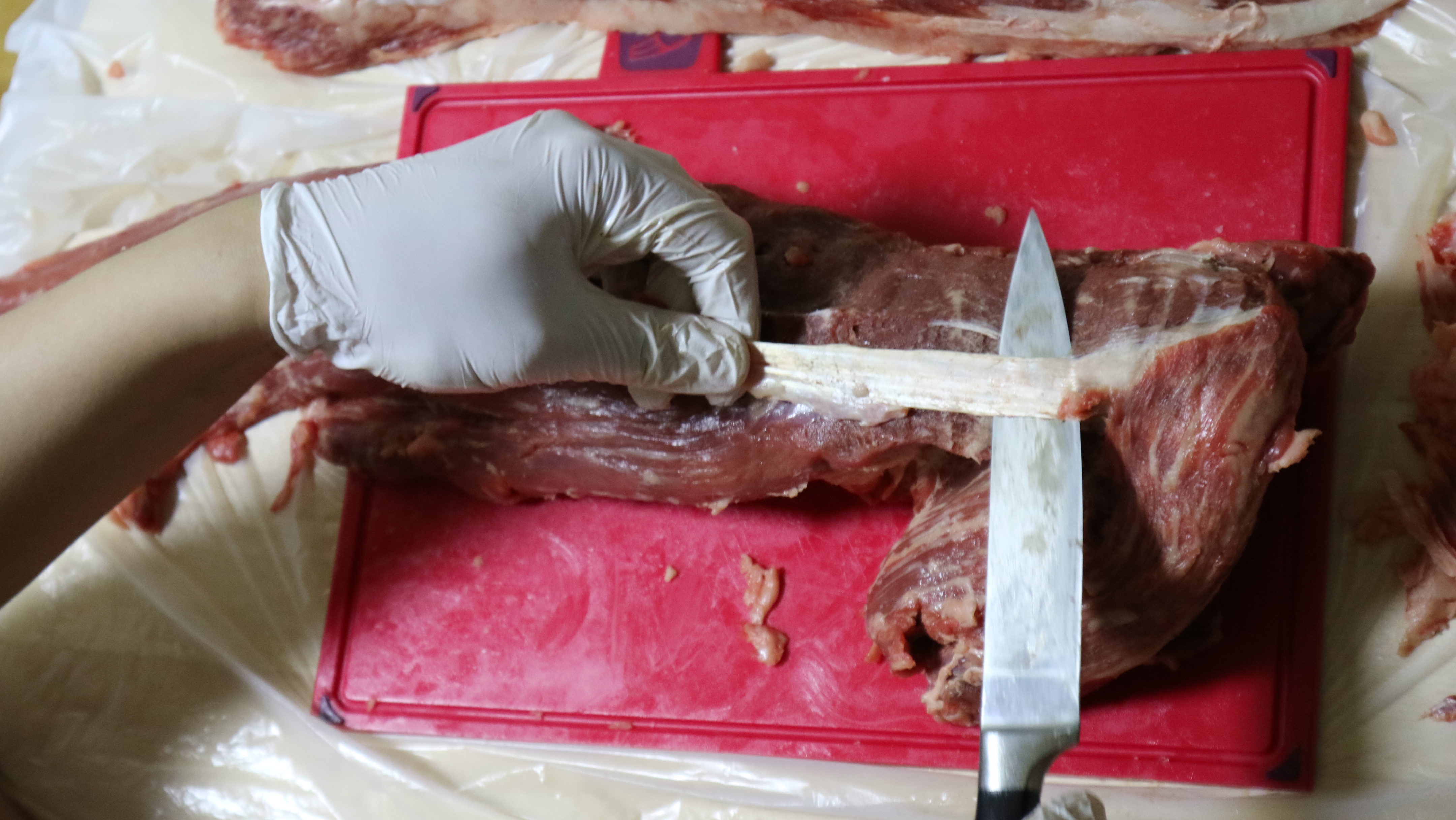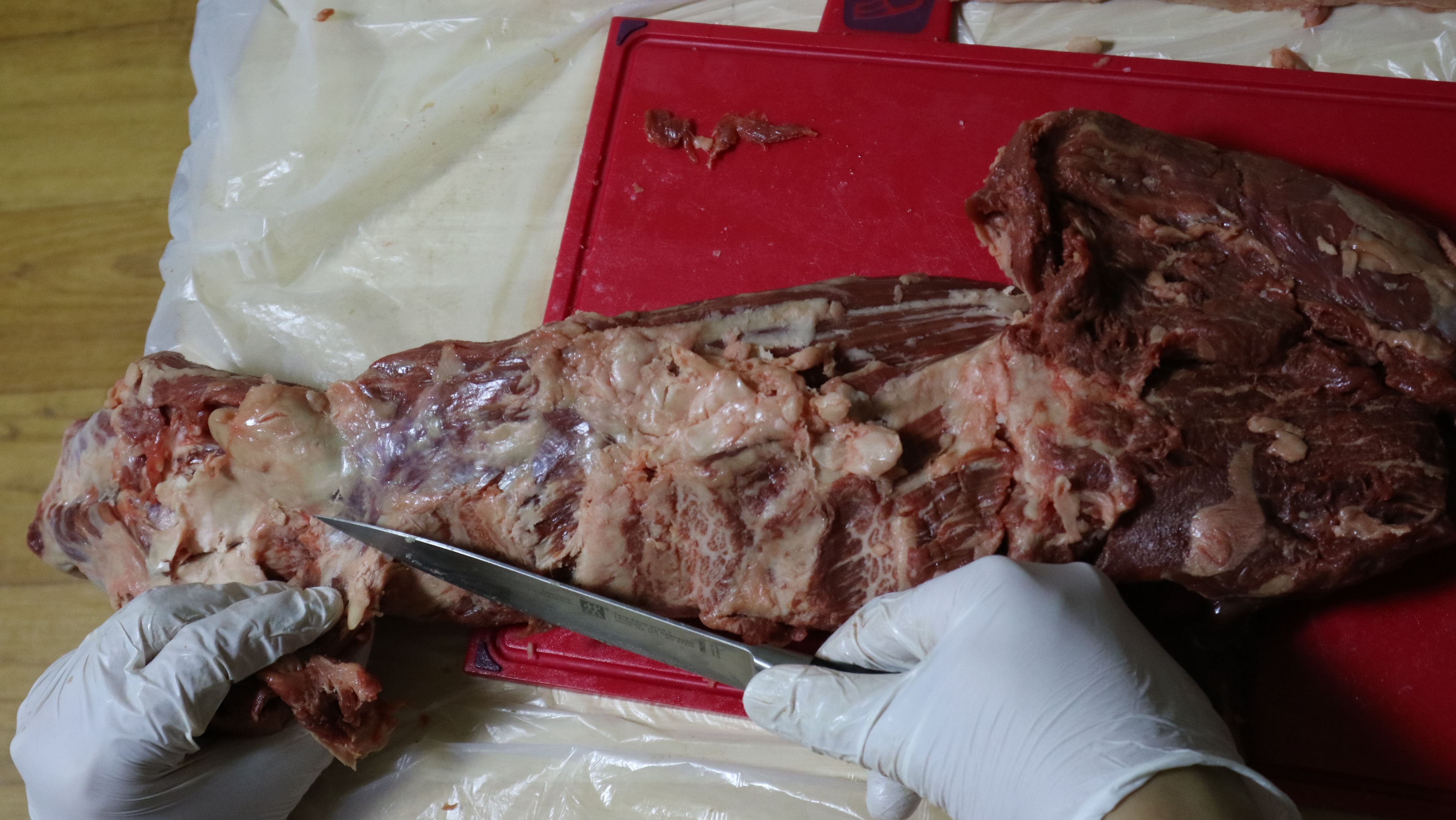 양갈래 진 사이에 지방도 많고 스지가 굵은게 붙어있어요. 그걸 다 제거해줘야해요.